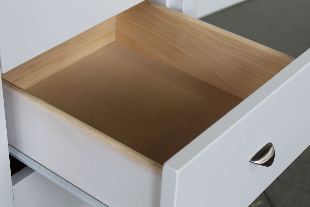 - On painted bedroom unit drawers, the outsides of the drawers are painted but the inside of the drawers are left raw.