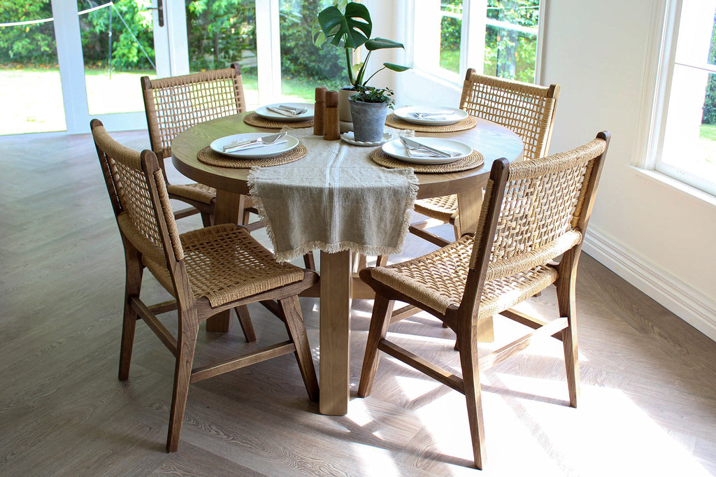 Does a round table look good in a rectangular room? A round table can actually soften the hard lines of a long, narrow space and create a sense of balance. Just make sure the table isn’t too small for the room, as this can make the space feel awkward and out of proportion. Ideally, leave at least 900mm of clearance around the table so chairs can move in and out easily. This makes round tables a versatile choice for square, rectangular, and even open-plan rooms.