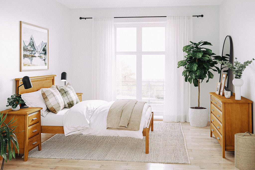 If you don’t have the budget or space to completely redesign your room, you can still catch on to this trend by prioritising quality and comfort. You could add in a bedroom chair and splurge on quality bedding to create that luxury feel. With natural materials still trending, consider linen duvets, wool blankets and wooden furniture, flooring, or walls to create the nature effect.