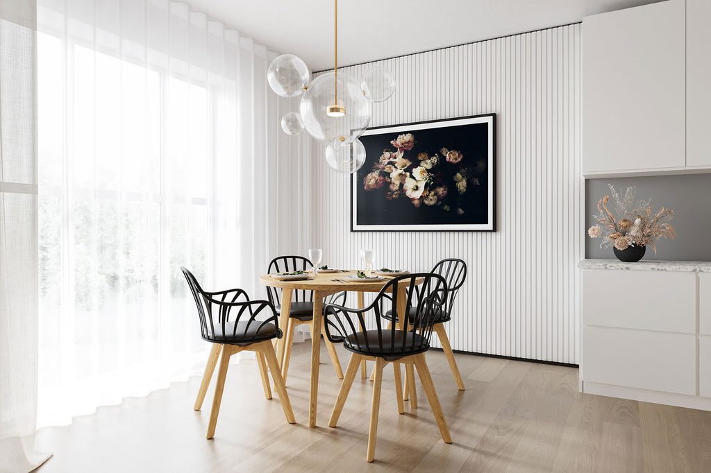 There were some great new interior design ideas in 2022 and some of these latest trends are perfect for small dining room inspiration. You’ve surely seen the curves trend by now, and what better way to maximise space in your little dining room than with a round or oval dining table? You’ll be able to fit more dining chairs around it and bring everyone in together.
