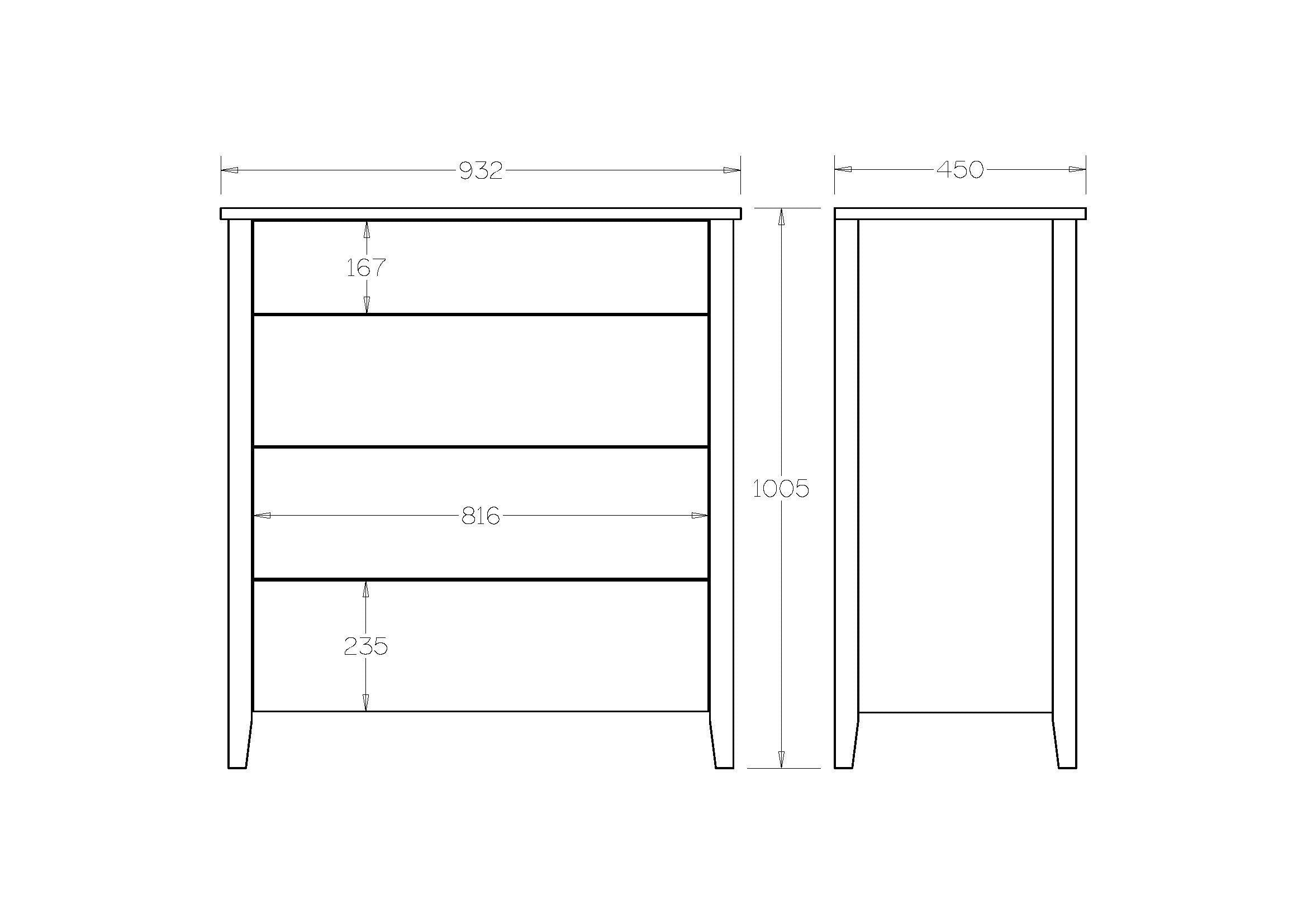 The Chicago 4 Drawer Tallboy offers an air of sophistication that will refine the décor of any room. The four drawers provide ample storage while maintaining a sleek, luxurious look. Tapered legs add elegance while providing a strong base and if desired, a glass top is available for added protection.
