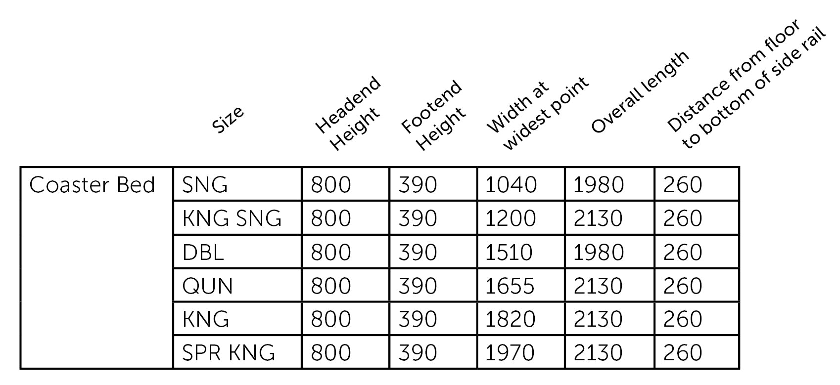 • Slats sit 20mm down from top of side rails