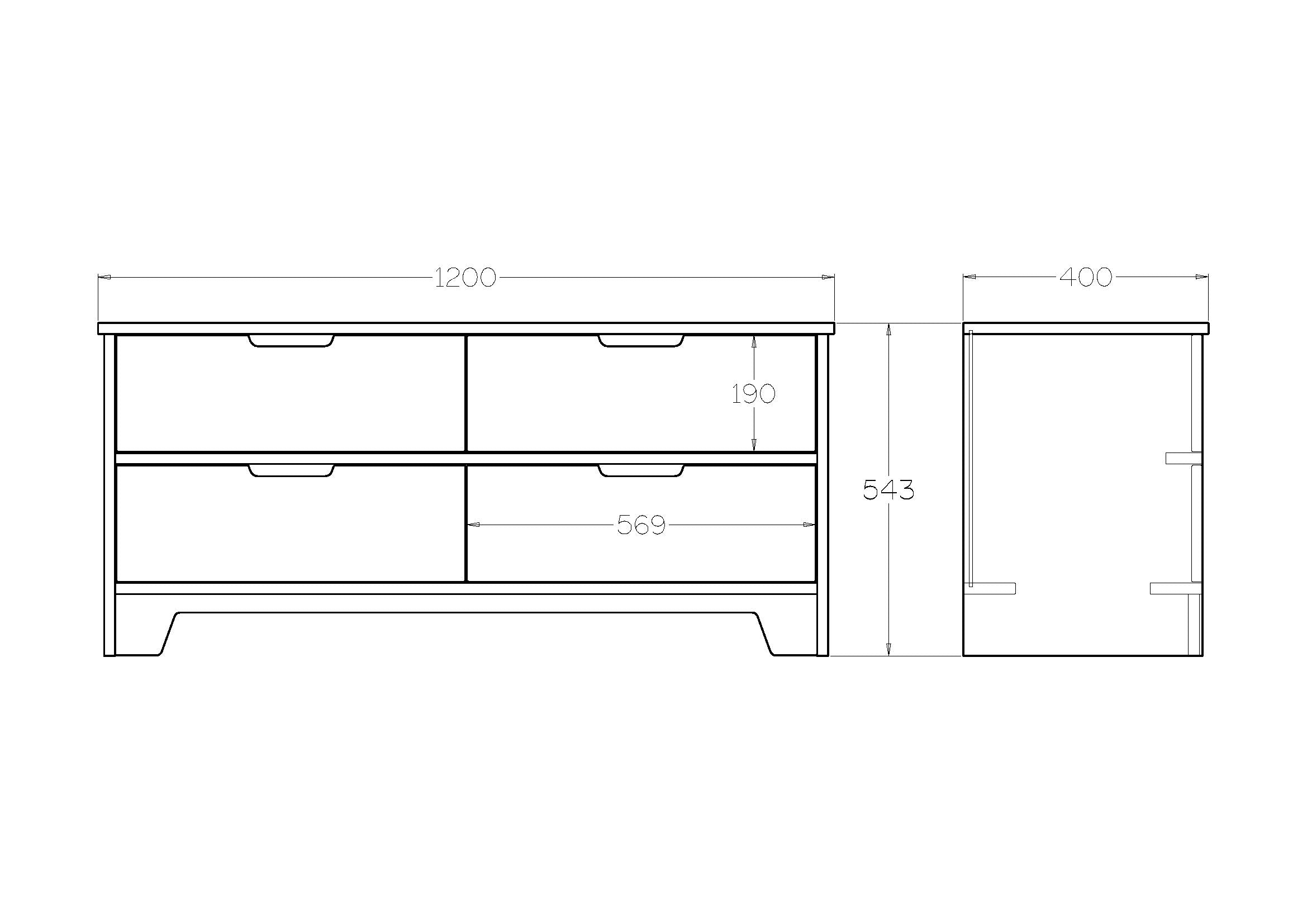 Short storage designed for beautiful clutter control and clothing management, but with the added bonus of a kid-friendly low surface top as an additional play/display area for their current favourites. Easy cut-out handles, smooth gliding drawers on quality double-extension metal drawer runners.