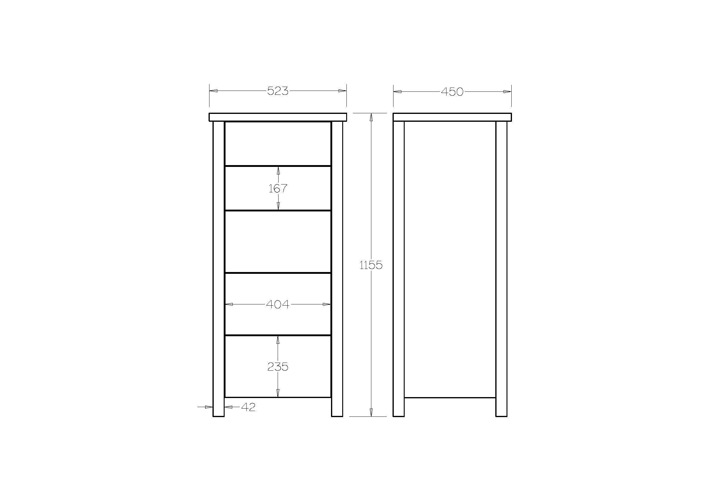 The straightforward lines of the Portland 5 Drawer Lingerie Chest produces a truly diverse design that can work in modern and traditional homes. This means you can determine how you like it- you get to choose the colour and handles so that it fits flawlessly into your bedroom. This compact unit incorporates five spacious drawers making it an excellent chest of drawers for small bedrooms.