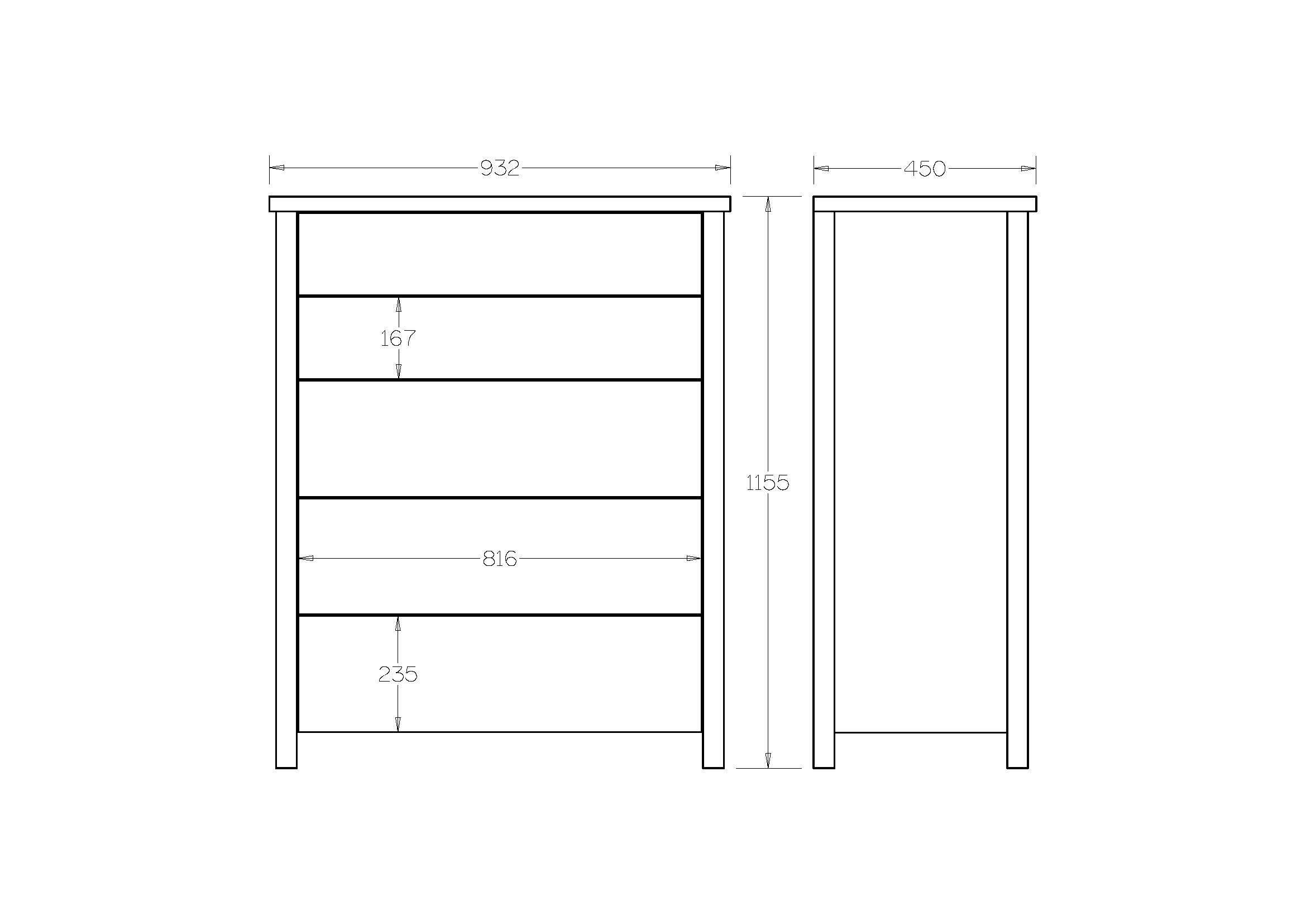 The straightforward lines of the Portland 5 Drawer Tallboy produces a truly diverse design that can work in modern and traditional homes. This means you can determine how you like it- you get to choose the colour and handles so that it fits flawlessly into your bedroom. This wide unit incorporates five spacious drawers making it an excellent set of tallboy drawers where plenty of storage is needed.