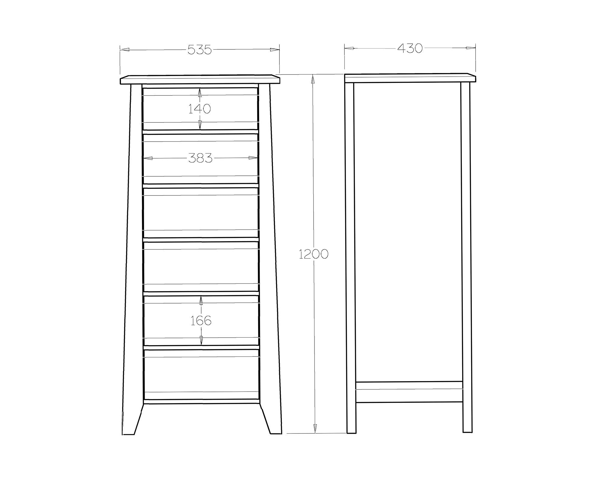 Verve’s angular design brings a modern aesthetic to the bedroom with a bevelled top edge that softens the overall look. The tall and slim shape is a great way to save floor space if you have a small bedroom; fitting in small nooks and still providing you with six drawers of storage space. You can choose a colour and handles that match in with your existing bedroom design or start afresh with a colour scheme you love.