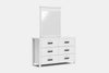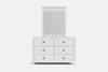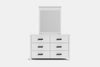 The Brook 6 Drawer Dresser & Mirror has such classic charm, enabling you to create a beautiful bedroom setting with any finish and handle choice. It’s the simplicity which makes this piece so lovable, a solid, unpretentious design that can be enhanced with curated styling and décor. Mainly constructed from NZ Pine, it’s solid and durable- a dresser that will last for years.