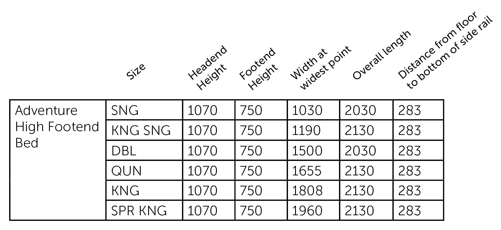 • Headboard: 1070h