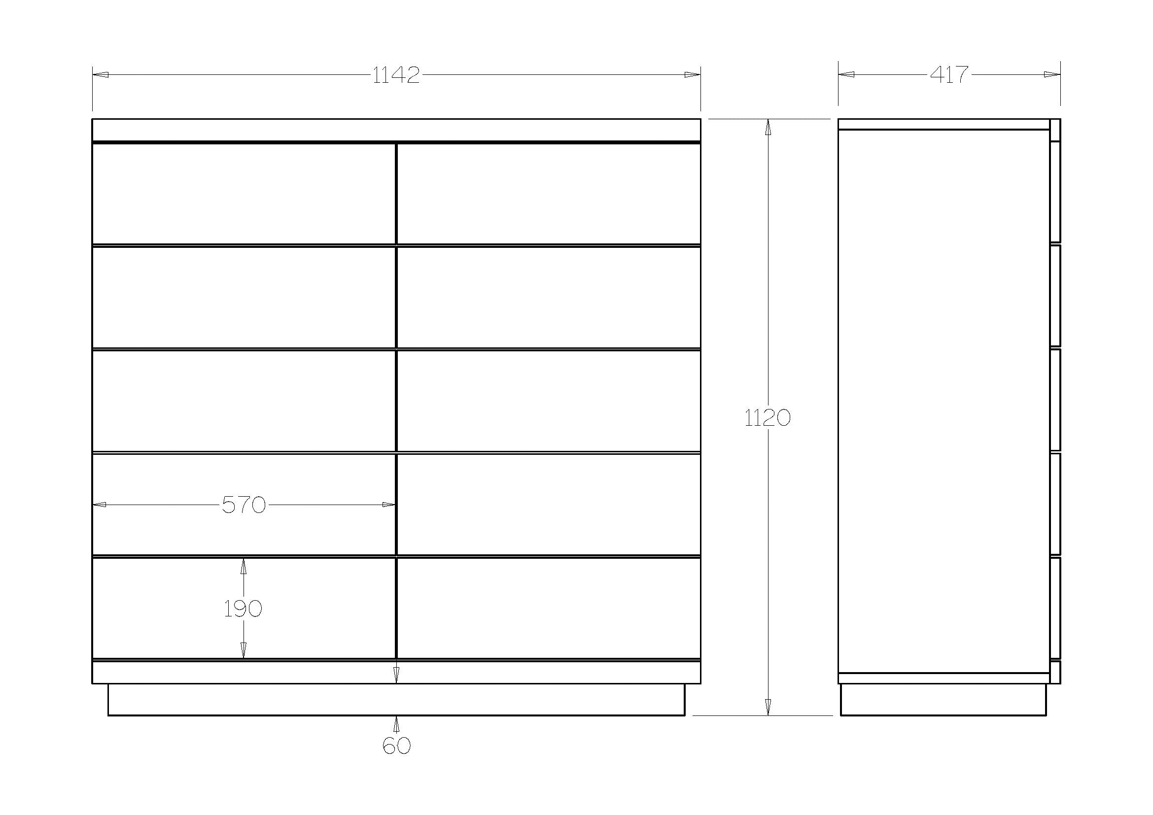 The simple, streamlined design of the McKenzie 10 Drawer Chest make it fully adaptable to any décor you wish to employ, with plenty of top space for decorating. Ten compact drawers make it ideal for couples or shared bedrooms so clothing can be organised into individual spaces.
