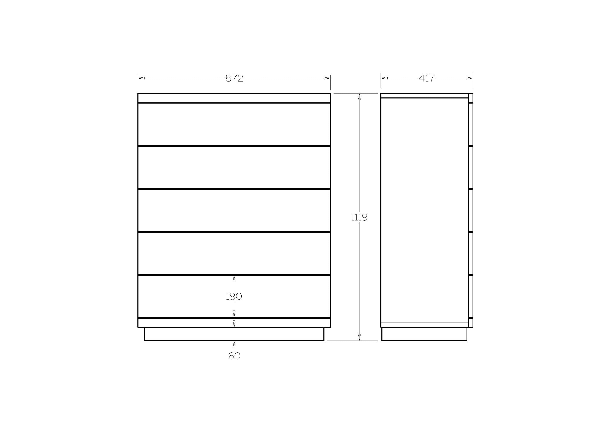 The simple, streamlined design of the McKenzie 5 Drawer Tallboy make it fully adaptable to any décor you wish to employ, with plenty of top space for decorating. Five compact drawers accented with unobtrusive handles, result in an attractive, functional set of drawers that will never look outdated.