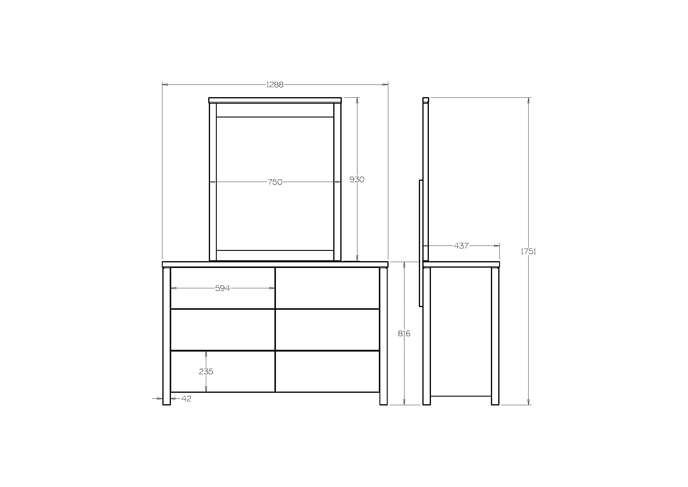 The Moana Dresser & Mirror features clean lines and silver trim which is sure to give your bedroom an updated look. The simple design and six easy-slide drawers will help your room feel very fresh and organised. Complete the look with a handle and colour that matches in with your style; you could go dark and smooth with a paint like charcoal or light and natural with a stain such as light oak- the options are endless.