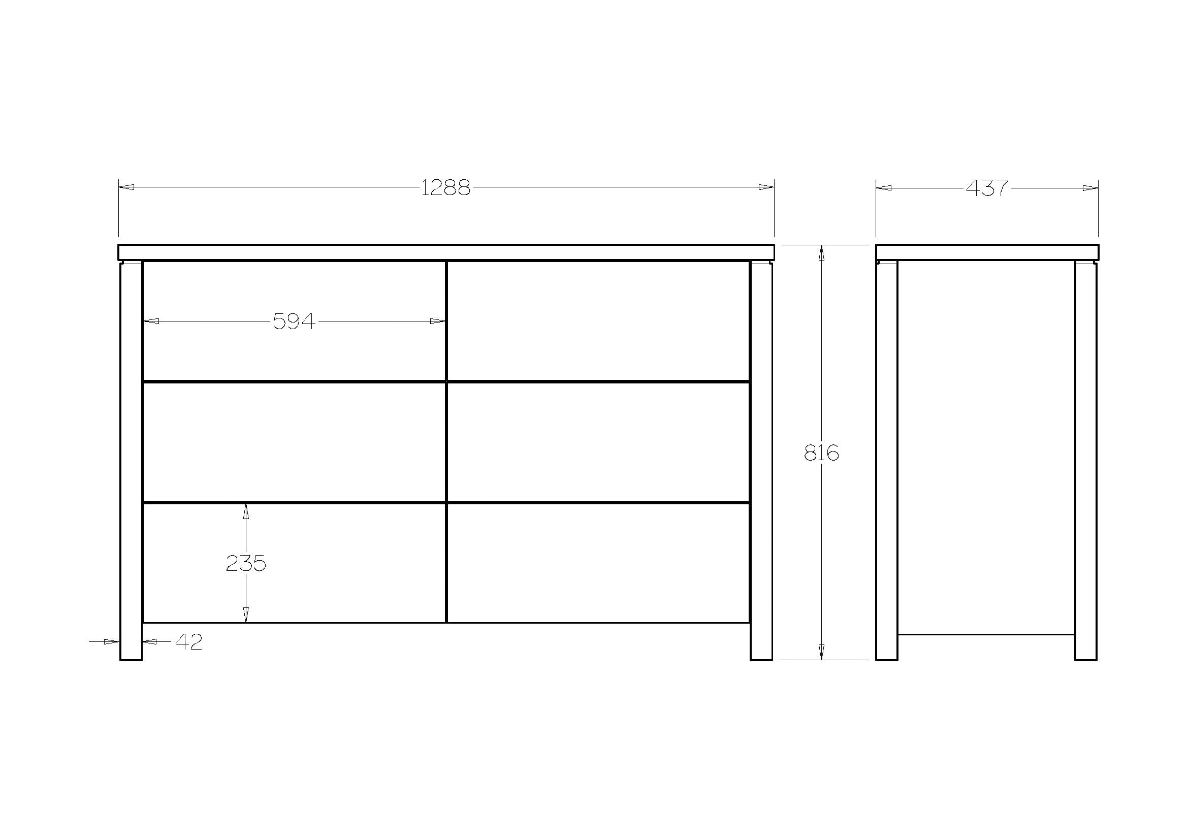 The Moana Lowboy features clean lines and silver trim which is sure to give your bedroom an updated look. The simple design and six easy-slide drawers will help your room feel very fresh and organised. Complete the look with a handle and colour that matches in with your style; you could go dark and smooth with a paint like charcoal or light and natural with a stain such as light oak- the options are endless.