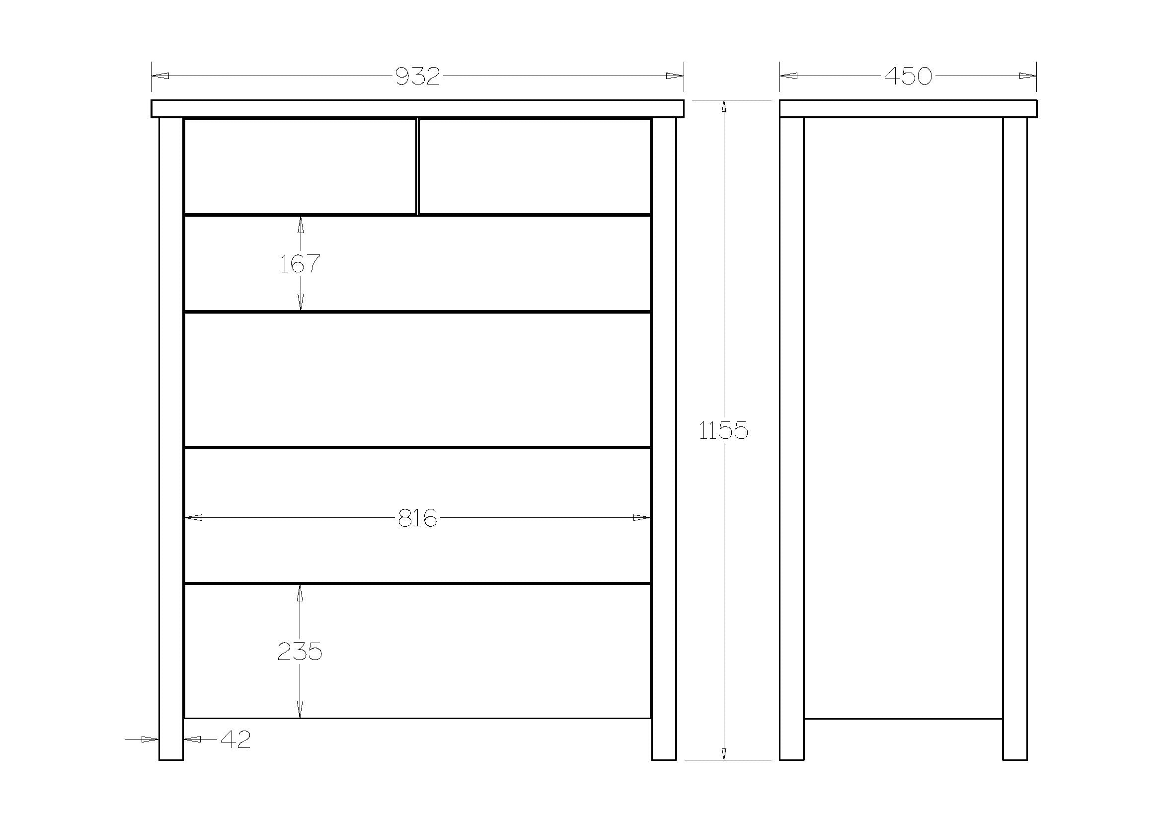 The straightforward lines of the Portland 6 Drawer Tallboy produces a truly diverse design that can work in modern and traditional homes. This means you can determine how you like it- you get to choose the colour and handles so that it fits flawlessly into your bedroom. This wide unit incorporates six different drawers making it an excellent set of tallboy drawers where plenty of storage is needed.