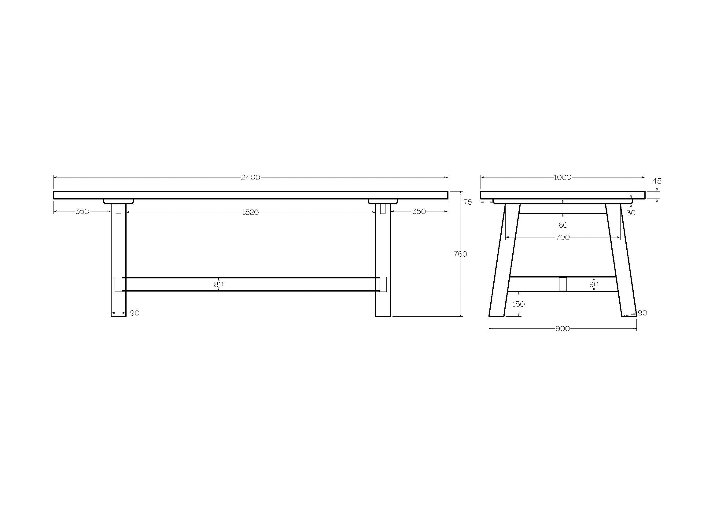 Barclay Dining Table - 2400 x 1000