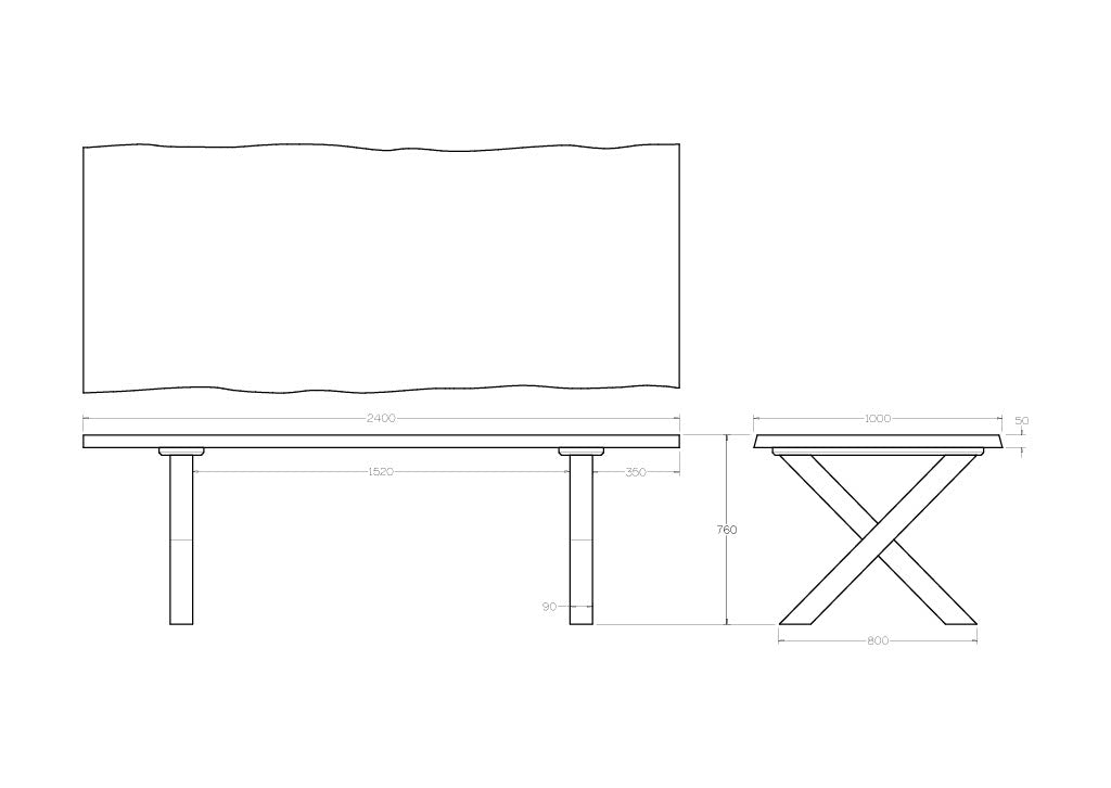Accommodate at least eight people around Coastwood’s stunning Neo 2400 x 1000 Dining Table. Knotty grade pine timber and wavy edges, reminiscent of New Zealand’s rugged coastline, come together in this flowing design for a natural look. Crossed black legs create a striking contrast, resulting in a stylish mixture of rustic and modern.