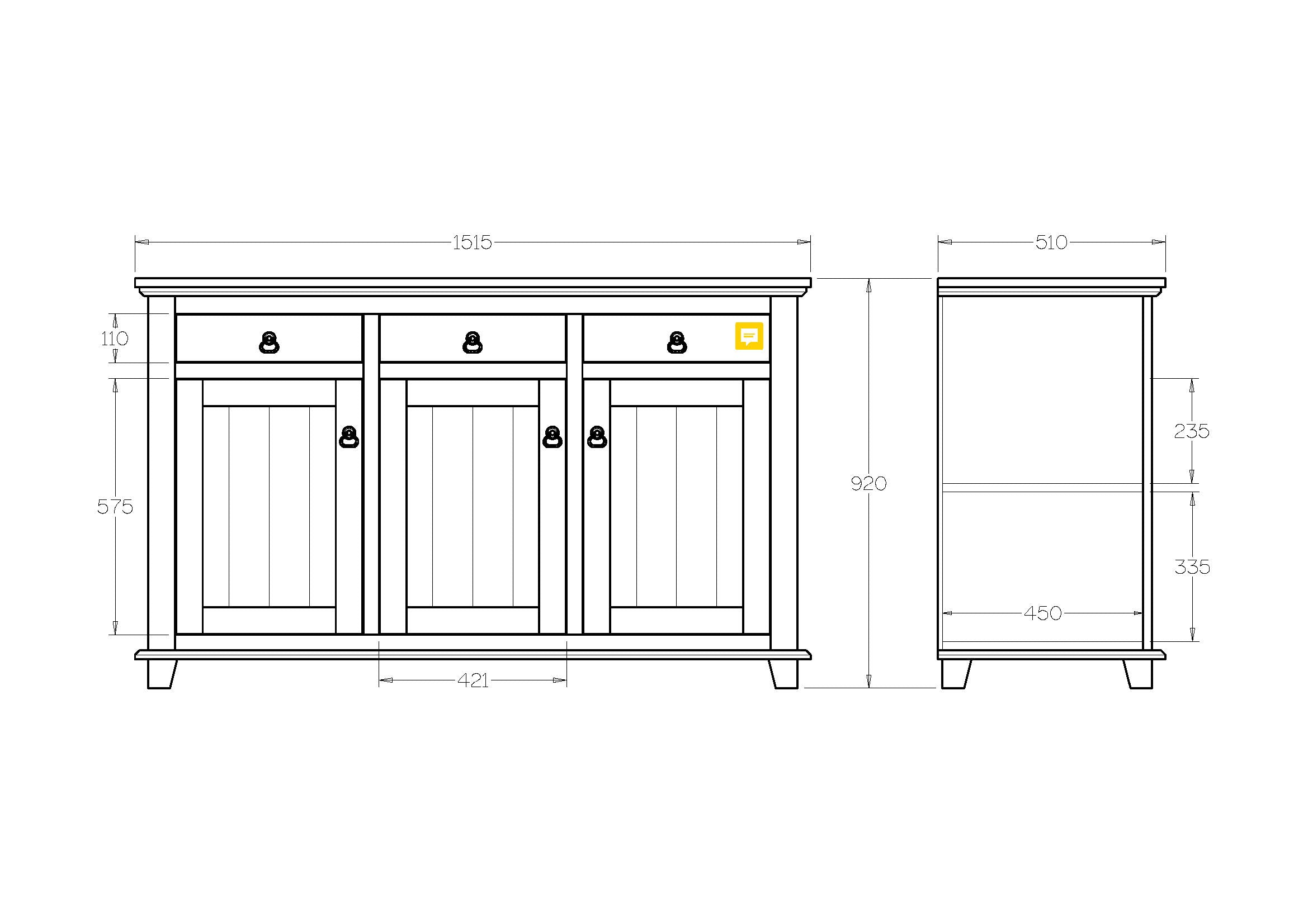 The Ferngrove 3 Door Buffet offers a classic look, and long-lasting quality to your home. A buffet table is your dining room's greatest asset, making a resourceful station when preparing or serving meals and is a great way to easily access your serve ware, teacups, and more.