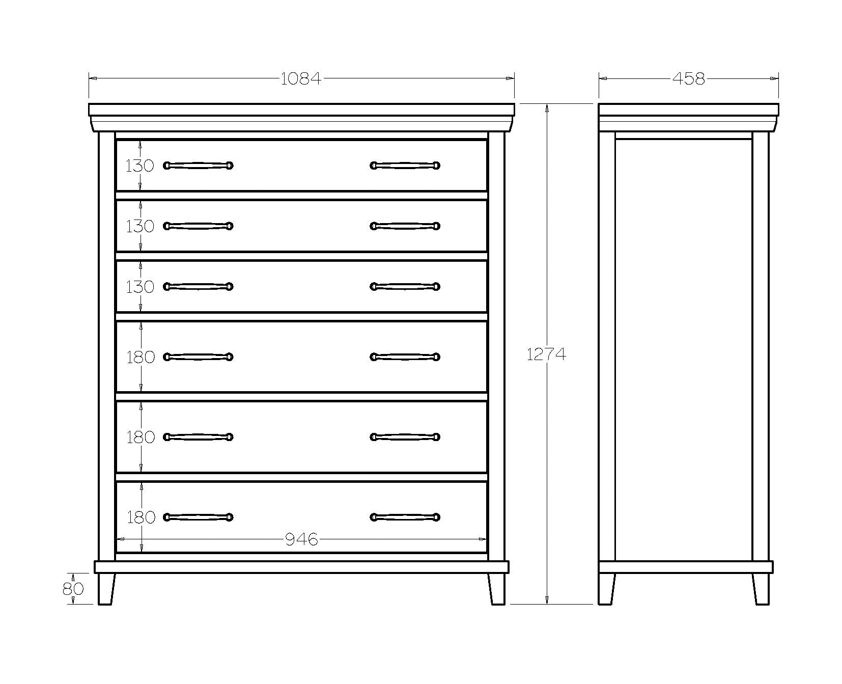 An elegant design doesn't mean a sacrifice of practicality. Six spacious storage drawers on easy-glide, double extension runners makes the Bayswater 6 Drawer Tallboy as functional as it is aesthetically pleasing. Attention has been paid to every finer detail to craft a quality showpiece. Featuring a thick solid top trimmed with a decorative moulding and slim-profile tapered legs, this Bayswater 6 Drawer Tallboy is guaranteed to elevate your space.
