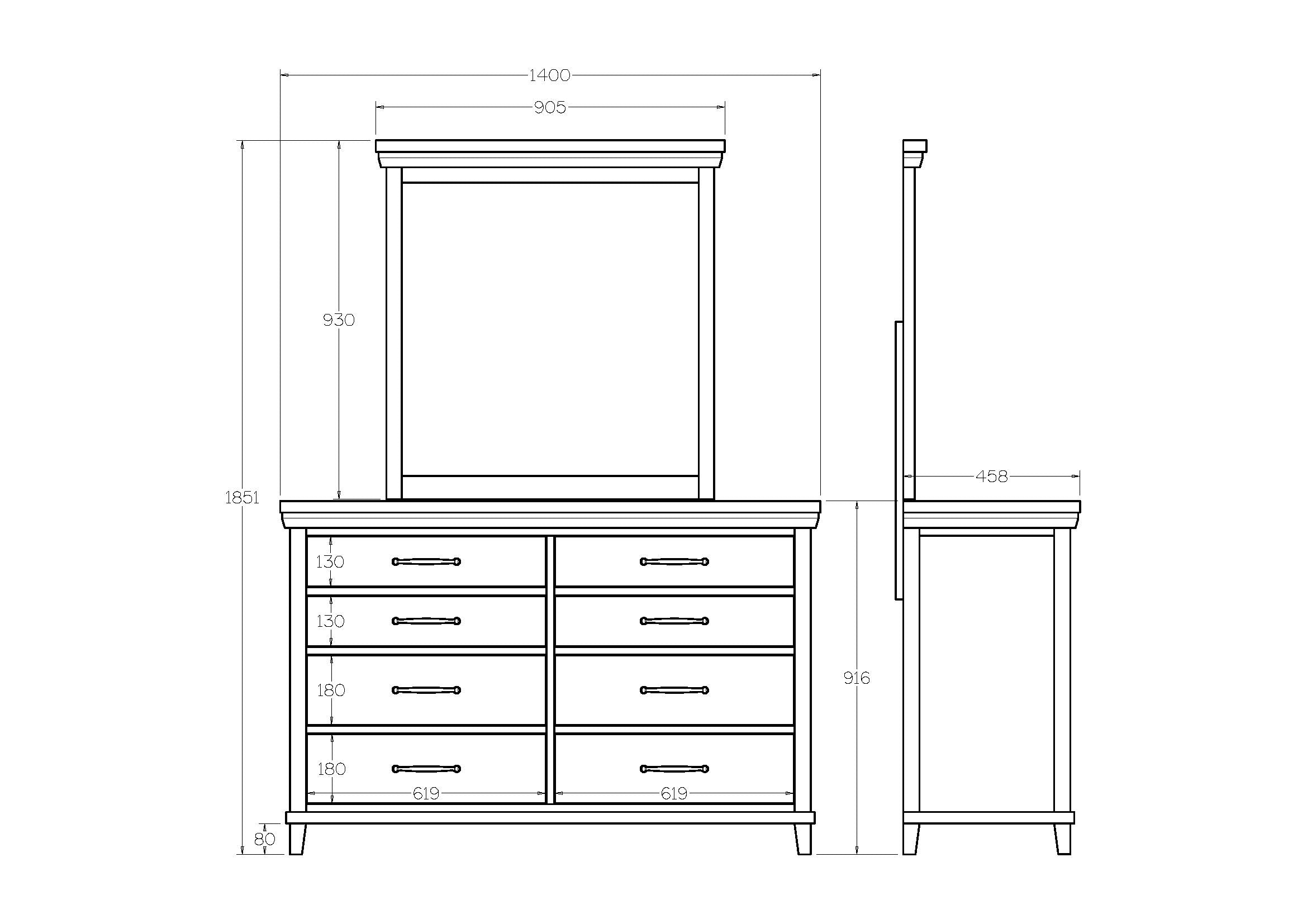 An elegant design doesn't mean a sacrifice of practicality. Eight spacious storage drawers on easy-glide double extension runners, and a large mirror, makes the Bayswater 8 Drawer Dresser & Mirror as functional as it is aesthetically pleasing. Attention has been paid to every finer detail to craft a quality showpiece. Featuring a thick solid top trimmed with a decorative moulding and slim-profile tapered legs, this Bayswater 8 Drawer Dresser & Mirror is guaranteed to elevate your space.