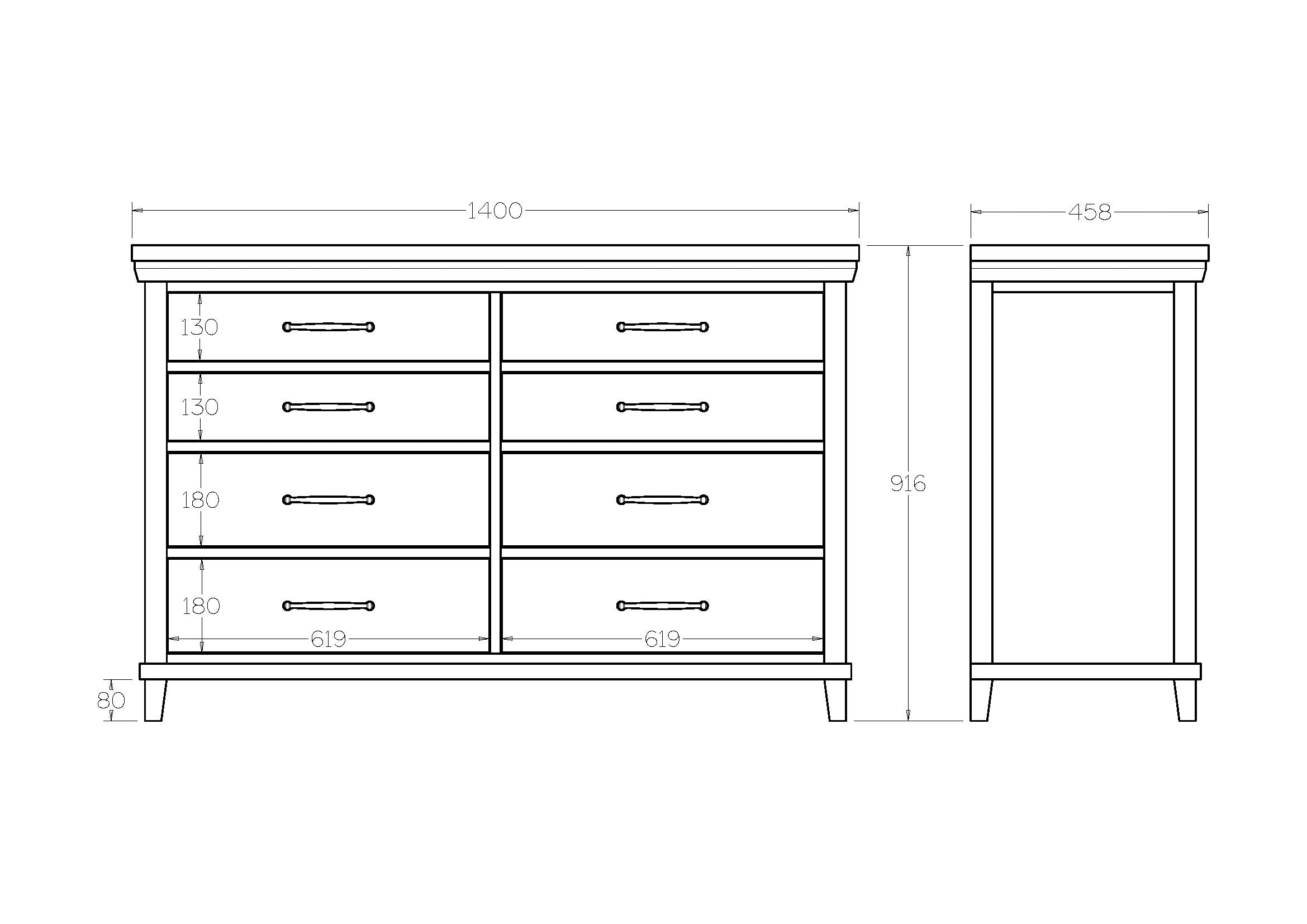 An elegant design doesn't mean a sacrifice of practicality. Eight spacious storage drawers on easy-glide, double extension runners makes the Bayswater 8 Drawer Lowboy as functional as it is aesthetically pleasing. Attention has been paid to every finer detail to craft a quality showpiece. Featuring a thick solid top trimmed with a decorative moulding and slim-profile tapered legs, this Bayswater 8 Drawer Lowboy is guaranteed to elevate your space.