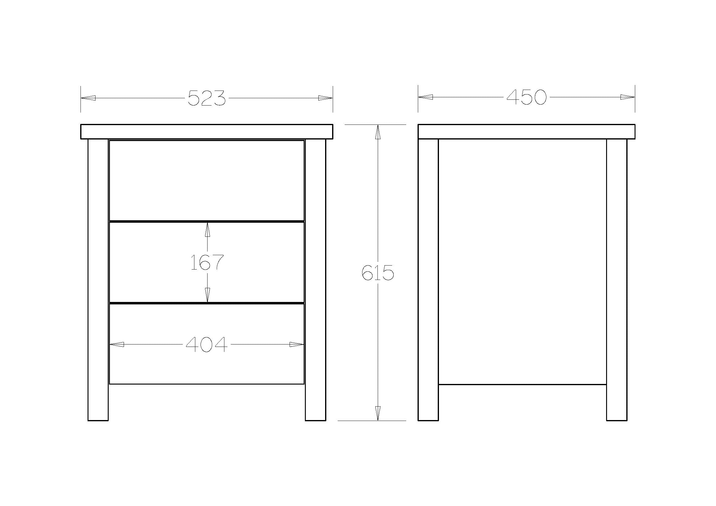 Brook 3 Drawer Bedside Table