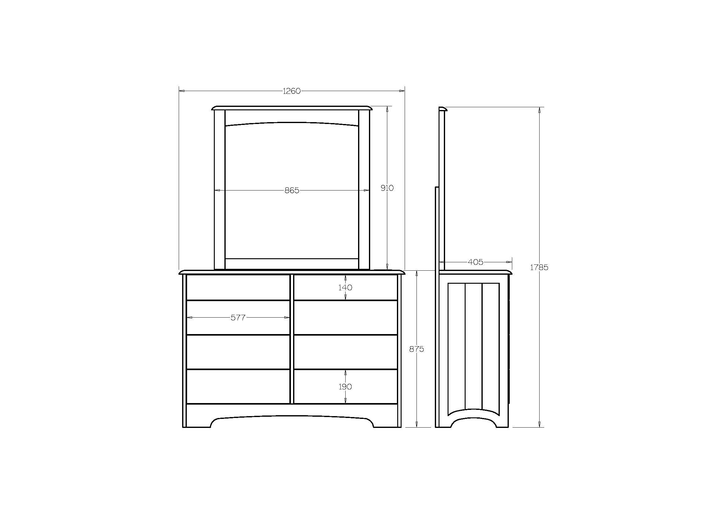 The Calais Dresser & Mirror has been designed to give your sleeping environment a warm and soft ambience. Featuring grooved sides, a large mirror and eight drawers with easy to slide metal runners for smooth opening and closing, there's room for everything from socks to hair accessories. With a variety of colour options, you'll have no trouble finding one to suit your bedroom.