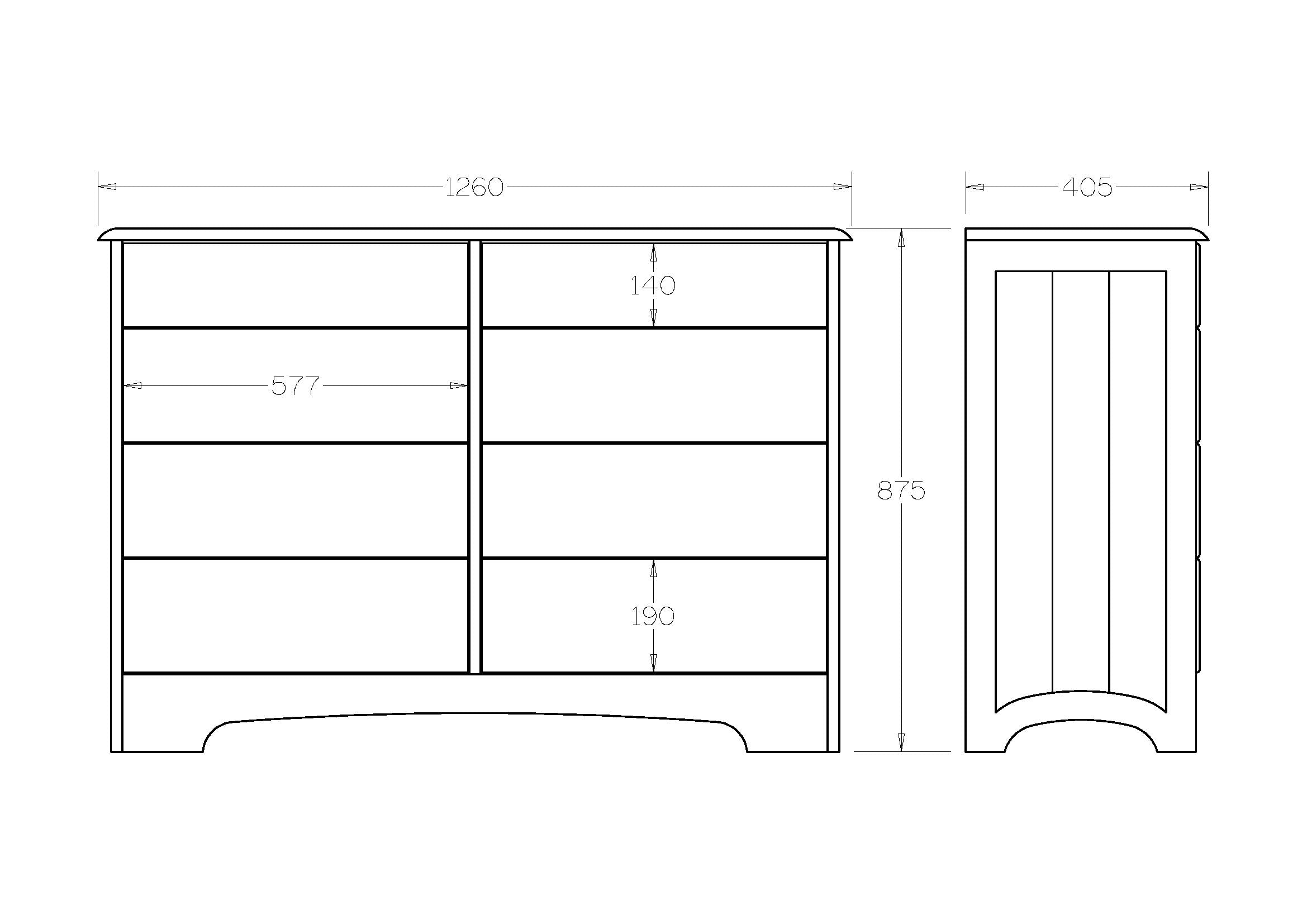 The Calais Lowboy has been designed to give your sleeping environment a warm and soft ambience. Featuring grooved sides and eight drawers with easy to slide metal runners for smooth opening and closing, there's room for everything from socks to hair accessories. With a variety of colour options, you'll have no trouble finding one to suit your bedroom