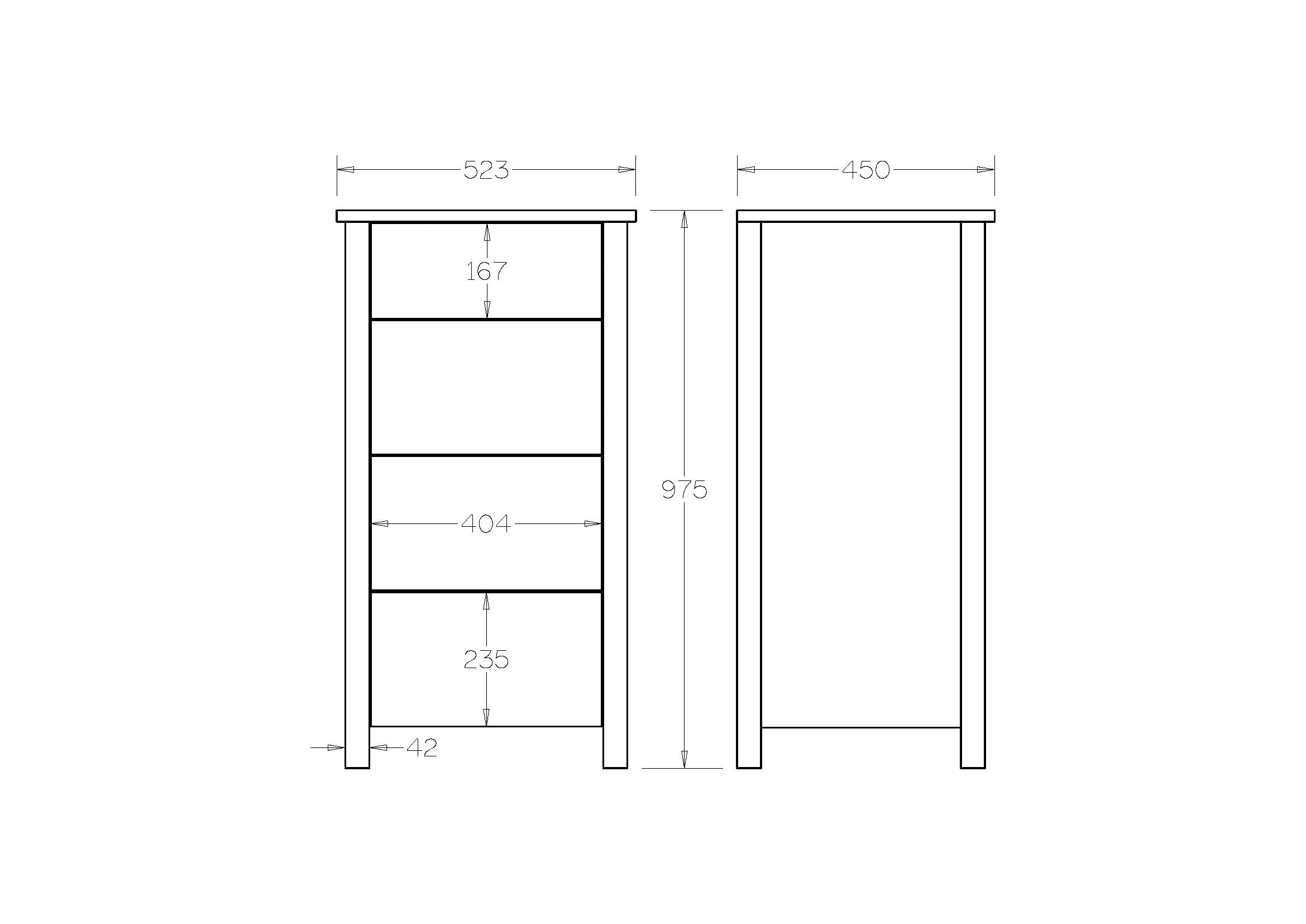 The Tillsdale Kids 4 Drawer Lingerie Chest is a handy storage option for your child's bedroom. The drawer size is made specifically for children and features easy-to-open metal drawer runners so that the drawers slide easily and won't become loose over time. With its simple and modest design, this kid's slimboy will fit into any child's bedroom.