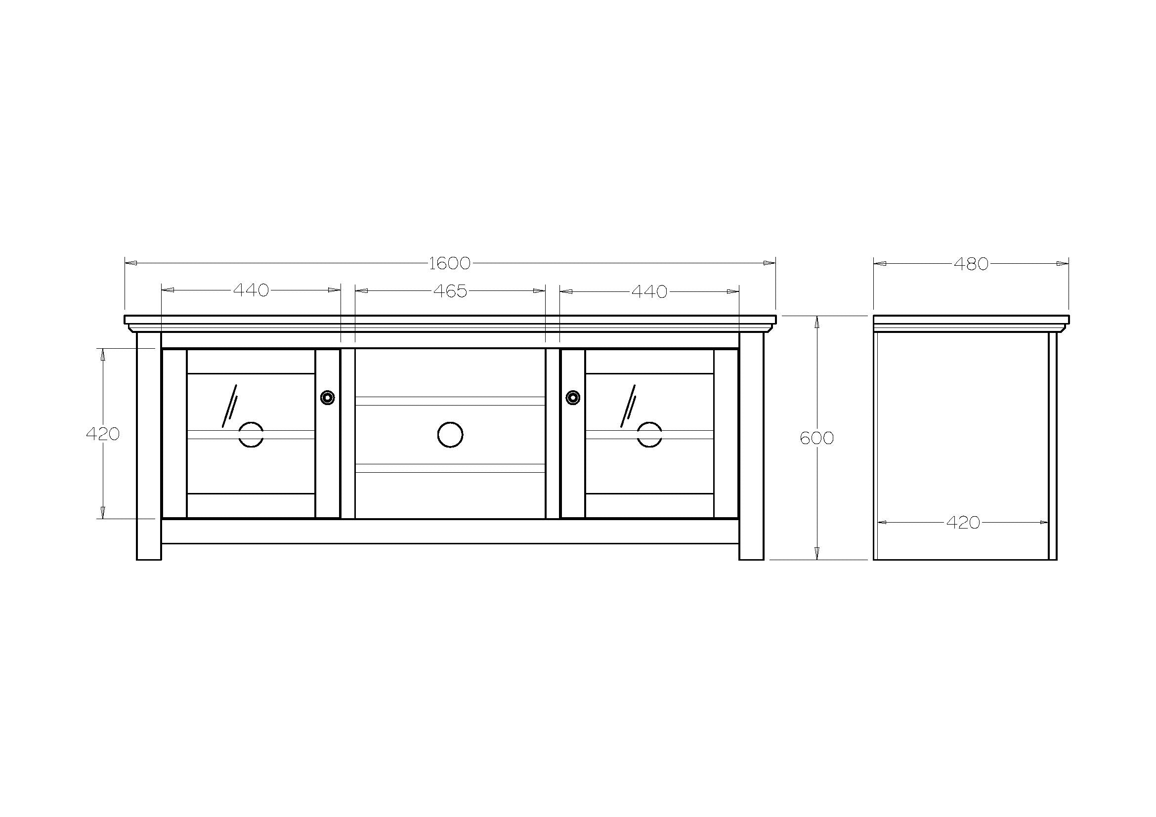Gain valuable TV storage and a classic look that will grace your home for a lifetime. Glass doors, metal badges and simple, square lines. With blending elements found in both contemporary and traditional styling, the Marsden Low TV Unit allows for functional placement in many household settings.