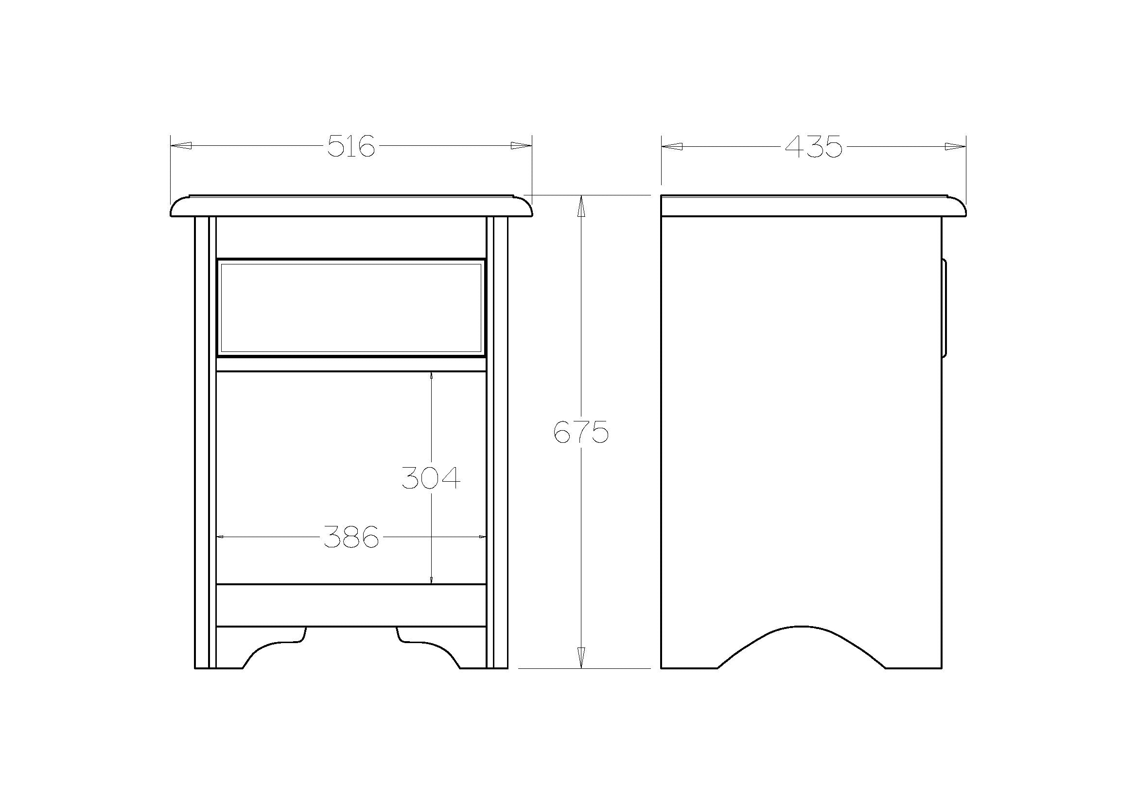 The Nordic 1 Drawer Bedside Table comprises solid Pine timber with a bevelled edge and forged iron trim, resulting in a timeless look that harmonises with traditional interiors. With a shelf and dovetailed drawer, your storage will always look attractive. From the initial design, right through to our unique, hand rubbed polishing process, this bedroom table has been crafted to bring enduring quality and style to your home.