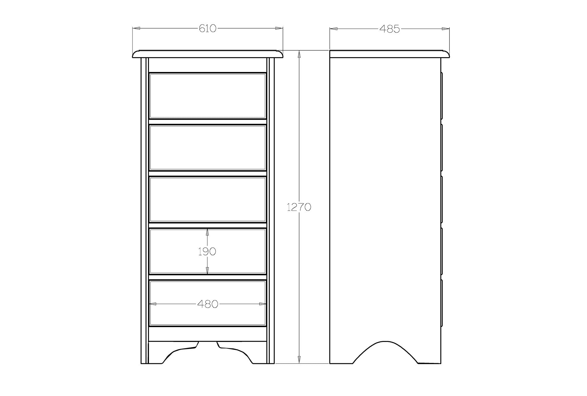 The Nordic 5 Drawer Tallboy comprises solid Pine timber with a bevelled edge and forged iron trim, resulting in a timeless look that harmonises with traditional interiors. With five dovetailed drawers, you instantly gain storage that always looks attractive. From the initial design, right through to our unique, hand rubbed polishing process, this set of bedroom drawers has been crafted to bring enduring quality and style to your home.