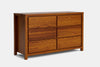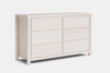 Crafted from Ash Timber, the Reva 6 Drawer Lowboy presents a natural and calm look in your bedroom. With a clean design displaying flowing patterns, this contemporary piece breathes new life into any space. Six roomy drawers feature double extension drawer runners and handle cut-outs underneath to maintain an uncluttered appearance.