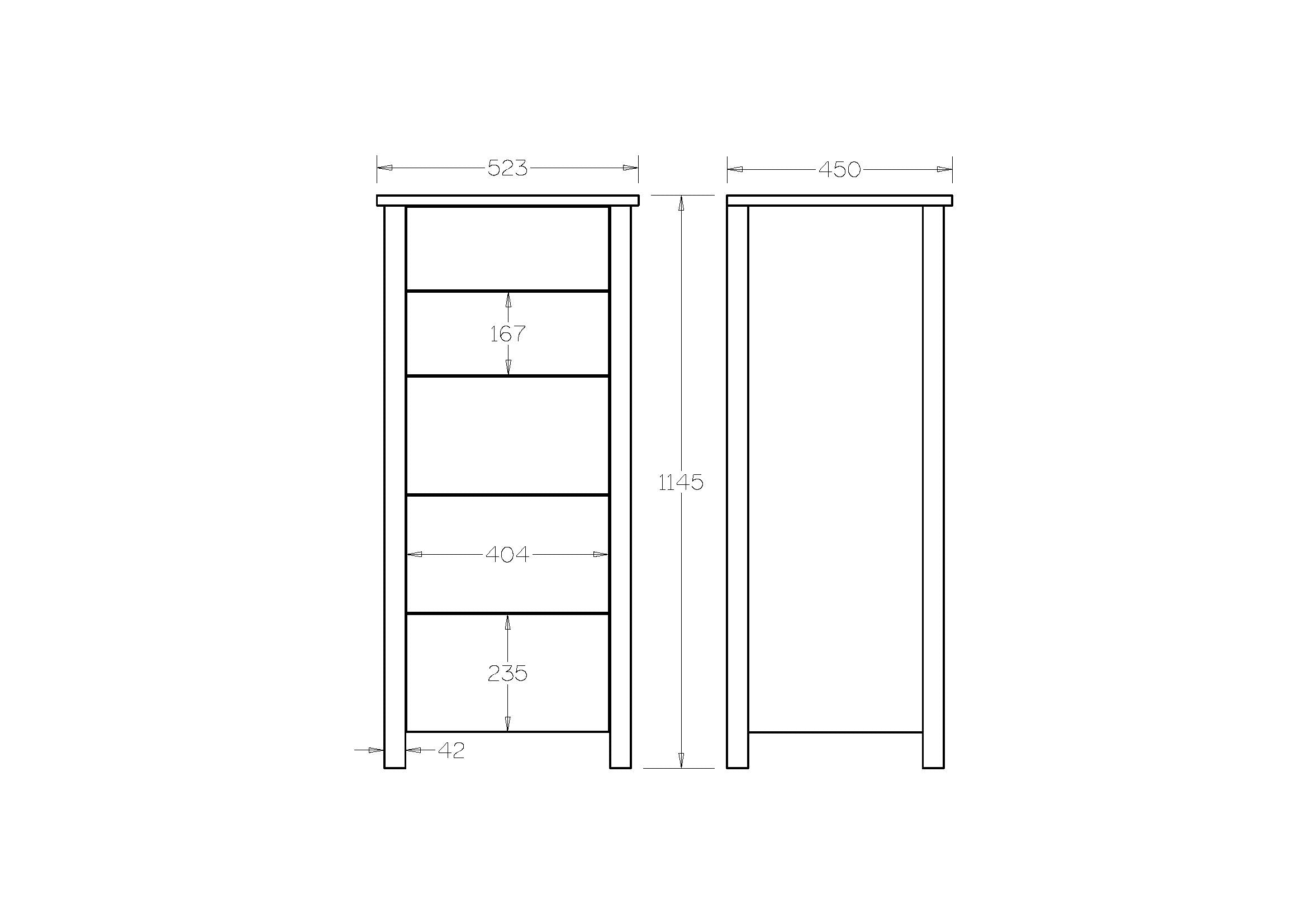 The Tillsdale 5 Drawer Lingerie Chest offers a classic look with simple lines for a relaxed sense of style. An array of colour and handle options allow it to fit into any New Zealand home. With three narrow yet deep drawers and two shallower drawers, it’s the best solution for extra storage in your home without compromising space.