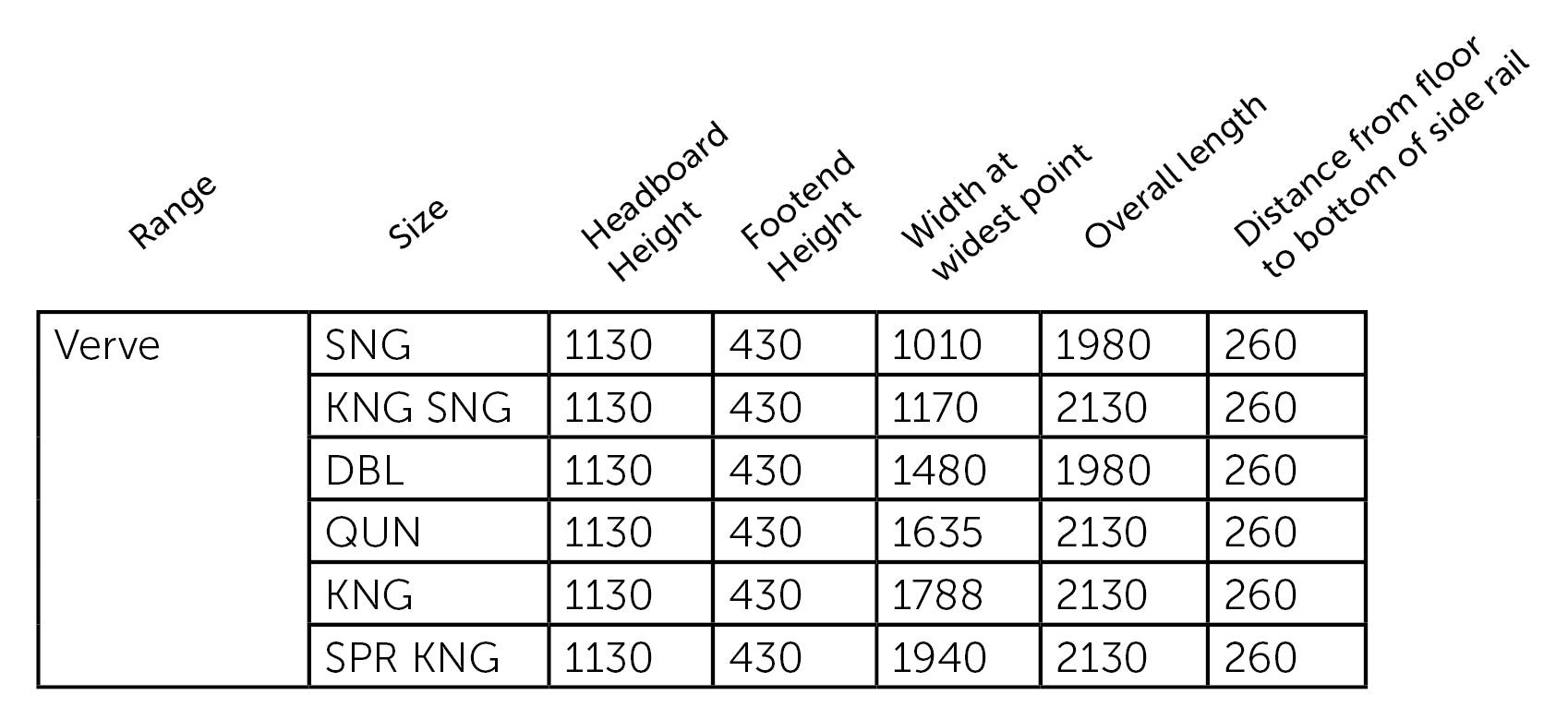 • Sizes double and above come with a centre rail for additional support