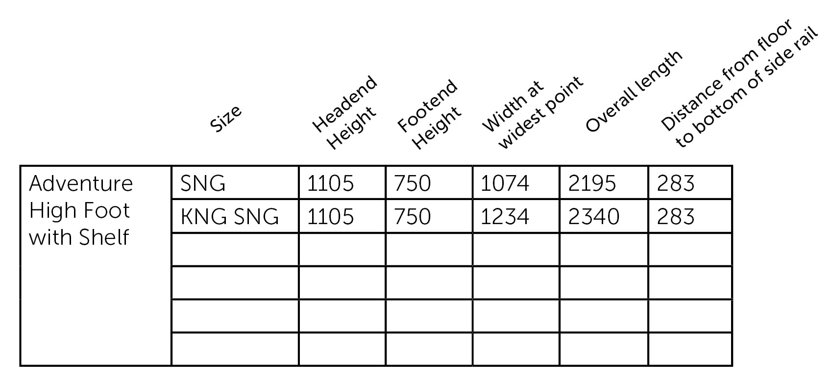 • Headboard: 1105h