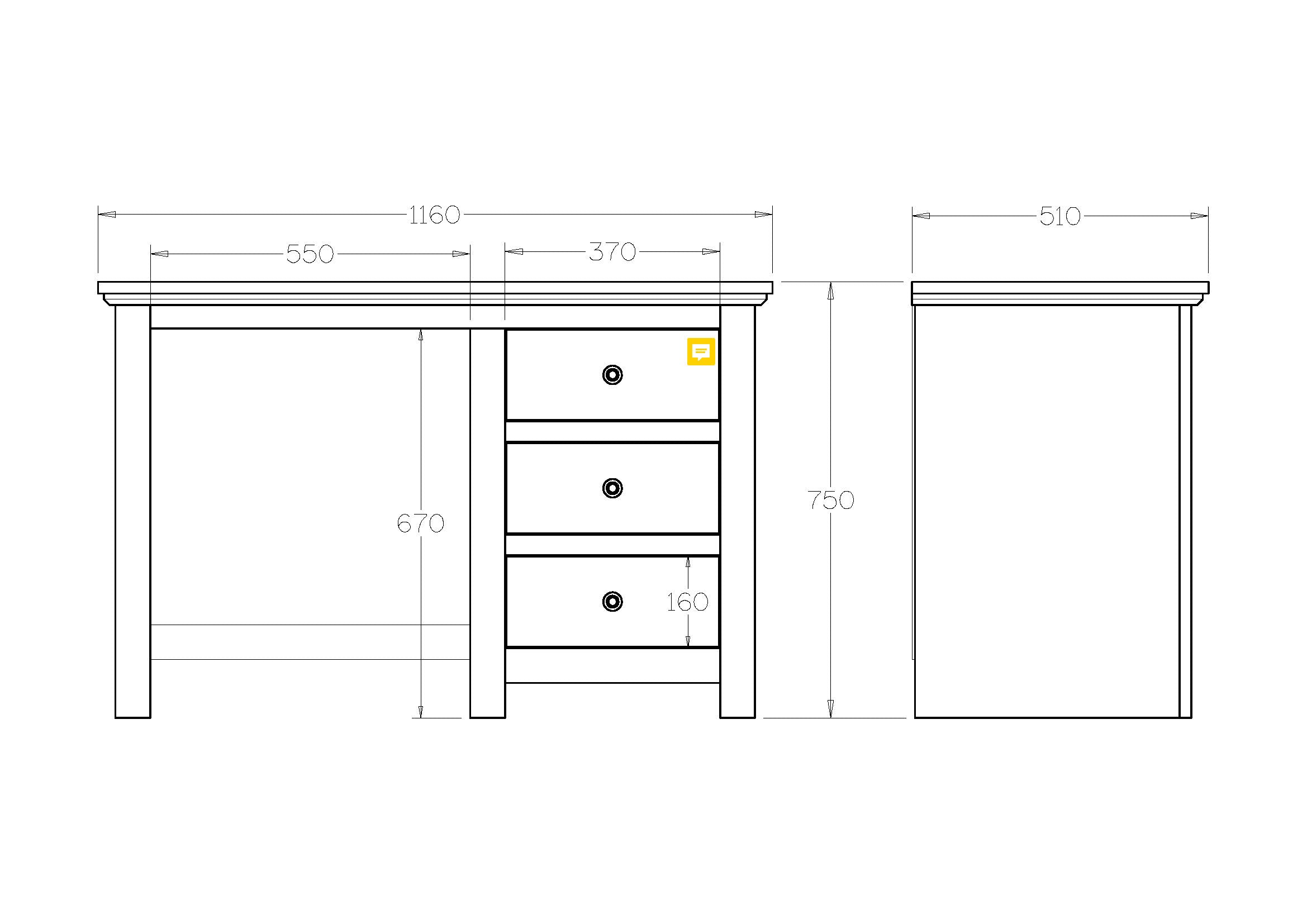 Gain a complete workspace and a classic look that will grace your home for a lifetime. Dovetail joints, metal badges and simple, square lines. With blending elements found in both contemporary and traditional styling, the Marsden 3 Drawer Desk allows for functional placement in many household settings.