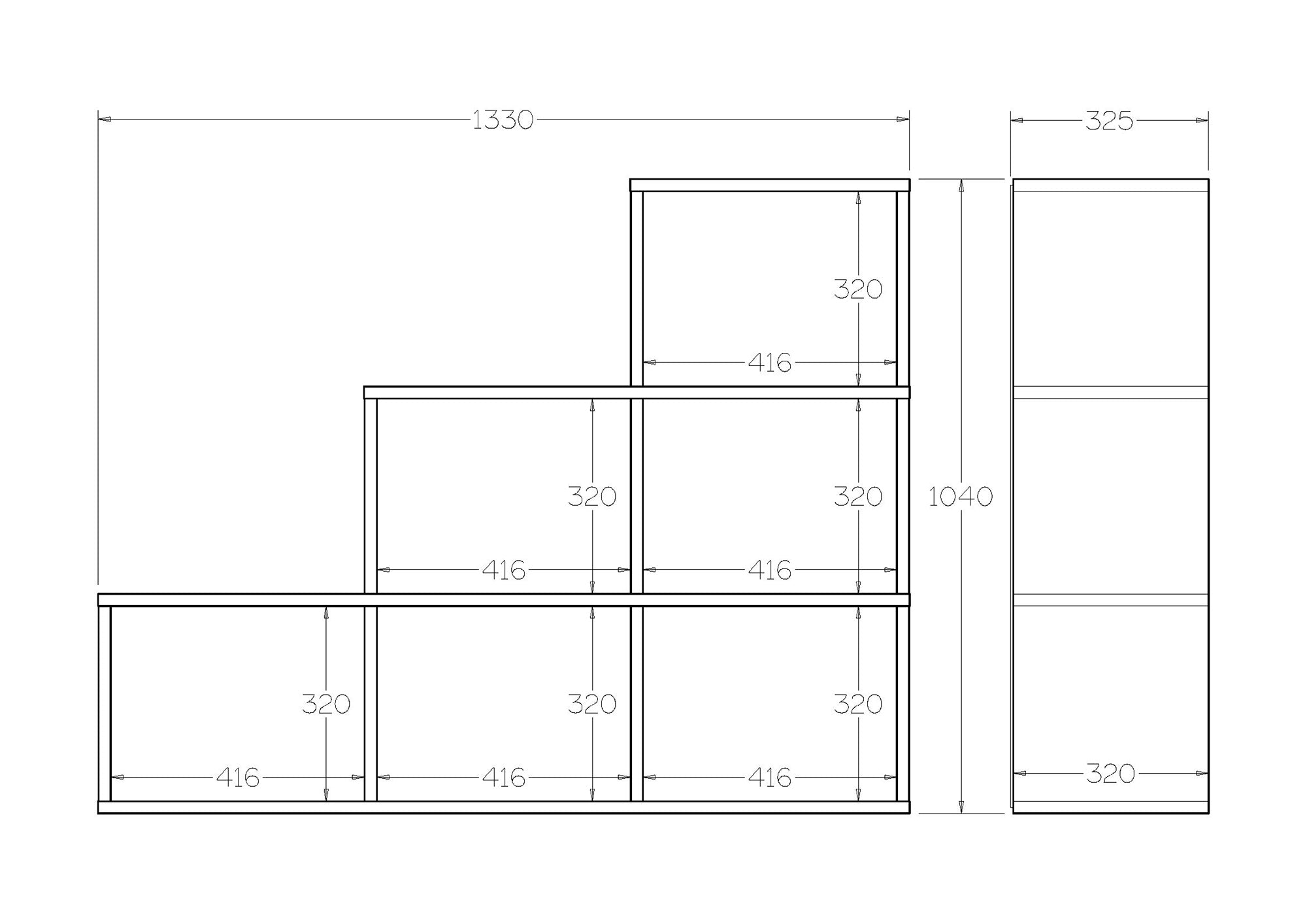 This versatile record shelf combines form and function, offering a stylish way to organize your music collection, books, or decorative items. Its unique stepped design provides six spacious compartments, allowing you to showcase your items in a visually appealing layout.
