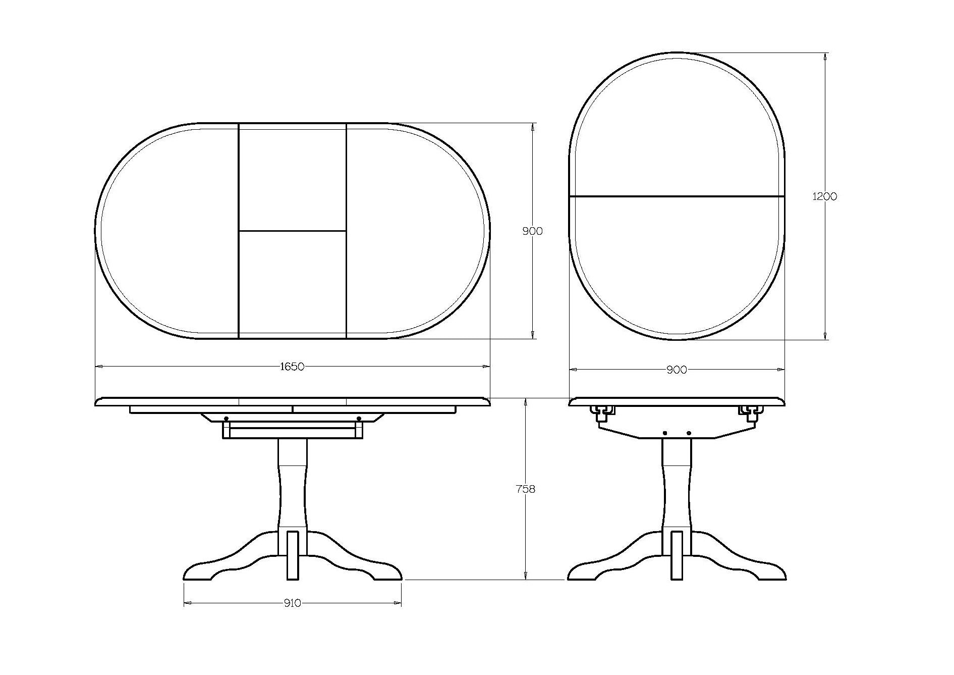 Butterfly leaf extends table to 1650 wide