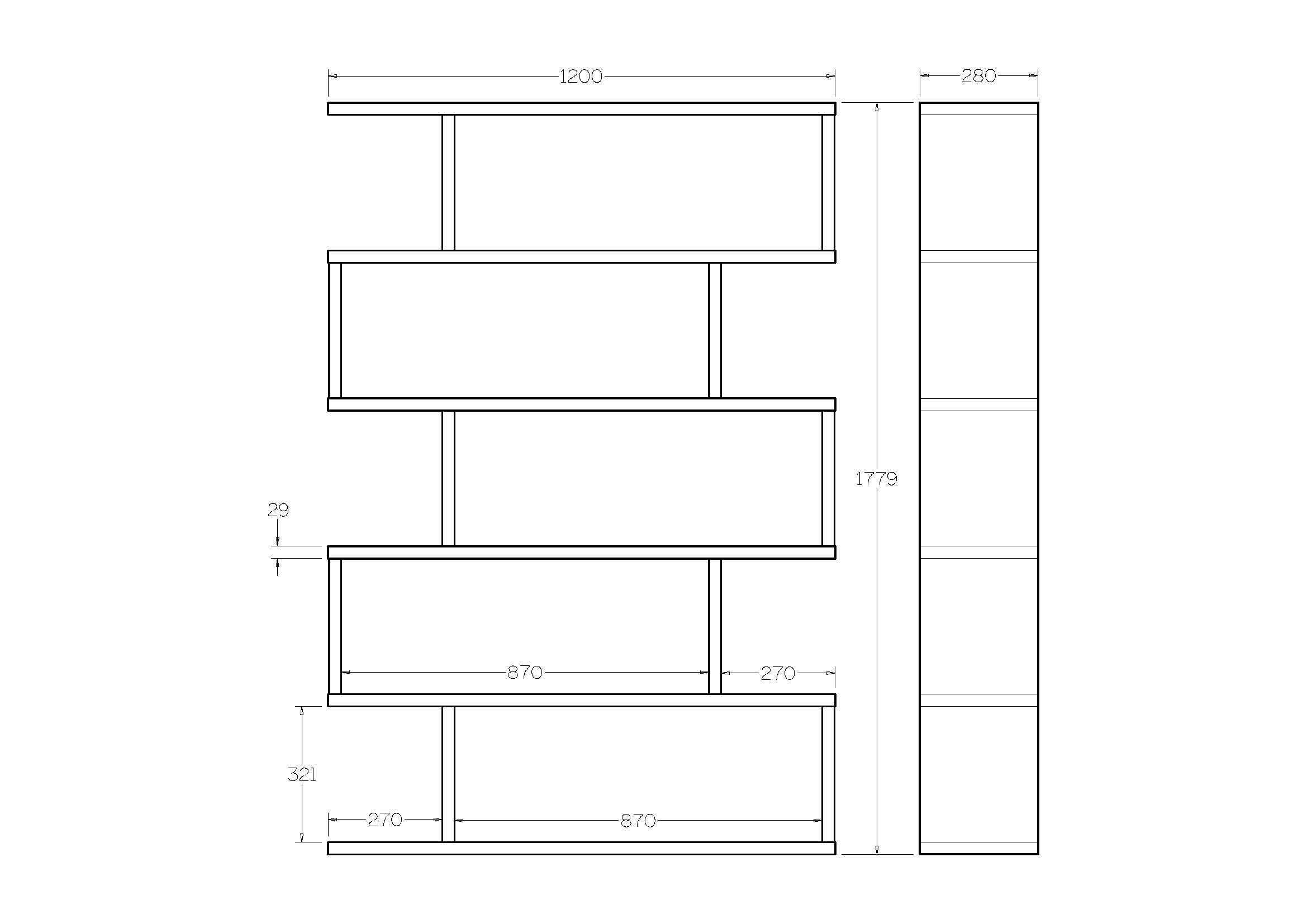 Make a statement with the Zeta Bookcase, a striking open shelf design that combines form and function. Its stepped, offset structure creates visual interest from every angle while offering generous space for books, décor and display pieces.